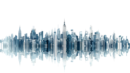 A futuristic city skyline with a blue tone, symbolizing modern architecture and innovation.