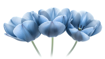 3D rendered vibrant blue tulips blooming against a pristine white backdrop suitable for graphic design elements