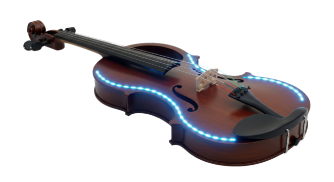 Iridescent blue and purple violin isolated PNG, musical instrument for orchestra or solo performance on transparent background
