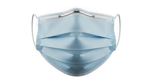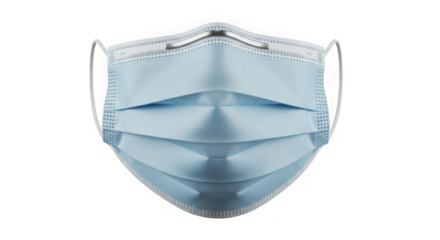 Blue disposable surgical face mask with ear loops isolated on transparent background