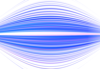 Abstract blue wave flow line design element isolated on transparent background, representing smooth motion, energy, or digital data stream