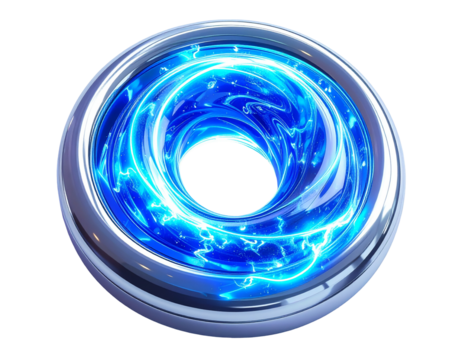 Metallic torus revealing glowing blue energy and lightning arcs