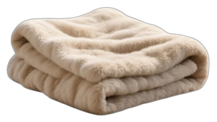 A folded navy blue wool blanket with fringe, isolated on transparent background, offering warmth and comfort for cozy evenings and adding a touch of elegance