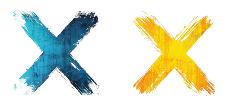 Flat design is showing yellow paint splatter with three blue X marks on transparent background
