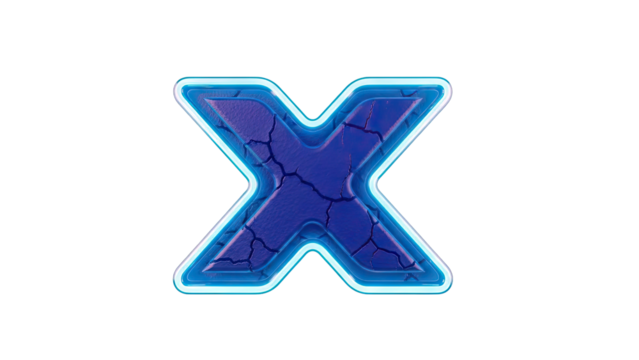 A 3D render of a glassy, light-blue letter "X", with a sharp, reflective quality against a solid black backdrop