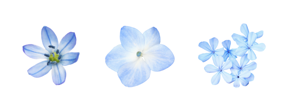 Set of Cluster of stunning blue roses arranged artfully on a white background, highlighting their rich color and texture on pure on transparent png background. Ai generated