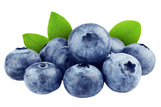 Blueberries fruit with leaf on white background, Fresh Blueberry on White Background PNG File.