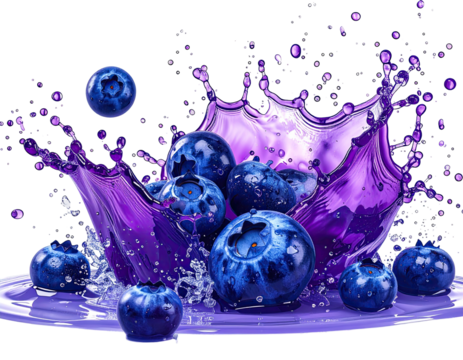 Vibrant blueberries in a splash of purple juice