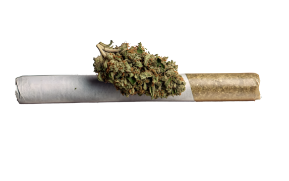 A cannabis blunt with a green bud on an isolated transparent background
