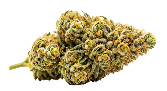 Close up of a cannabis flower bud isolated on transparent background for medical use