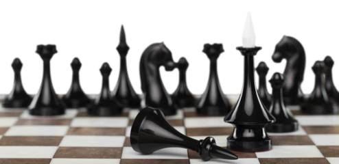 Black queen piece on transparent chess board