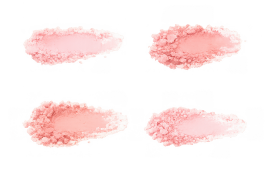 Colorful cosmetic powders arranged in piles showcasing shades of pink and white for beauty or makeup applications. isolated on white background and transparent background