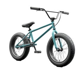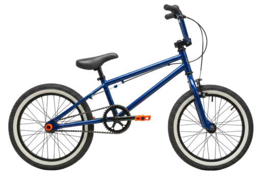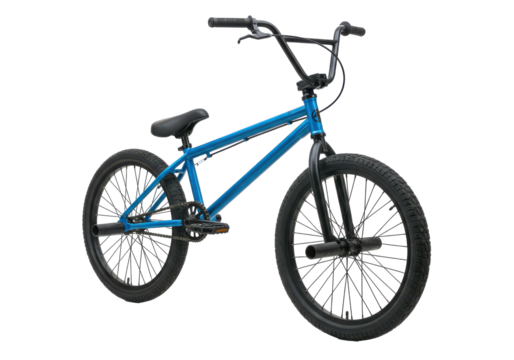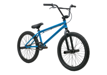 Blue BMX bike in dynamic pose, showcasing its sleek design and urban style
