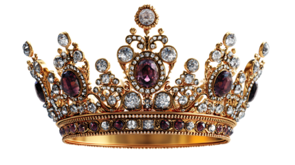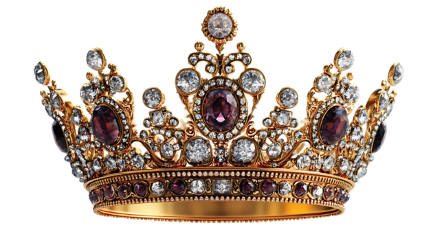 Luxurious gold crown with gems on transparent background