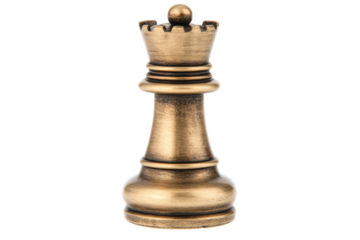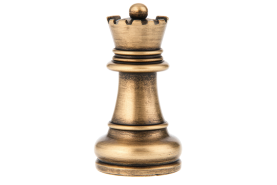 Antique brass chess queen piece isolated on white background, cut out - stock png.