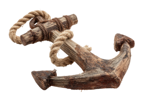 Old rusty anchor isolated on transparent background, nautical and marine theme