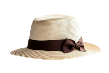 Summer straw hat png isolated (clipping path) on white background in Panama fashion hat style for summer beach vacation sun screen protection for both men and women