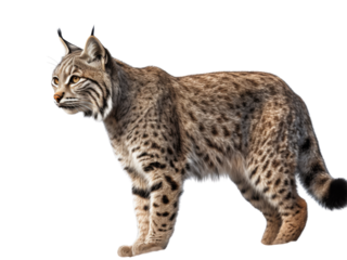 Bobcat walking on transparent background isolated on transparent background
