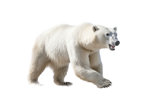 a majestic Polar bear in motion full body image,  Wildlife-themed, photorealistic illustrations in a PNG, cutout, and isolated. Generative AI