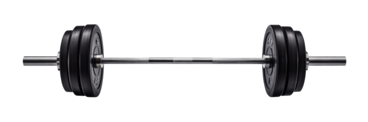 Professional barbell with heavy black weight plates ready for intense strength training and muscle building workouts
