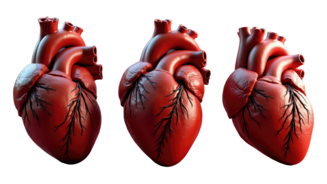 Three Realistic Human Hearts Anatomical Model 3D Render Cardiology Medical Illustration