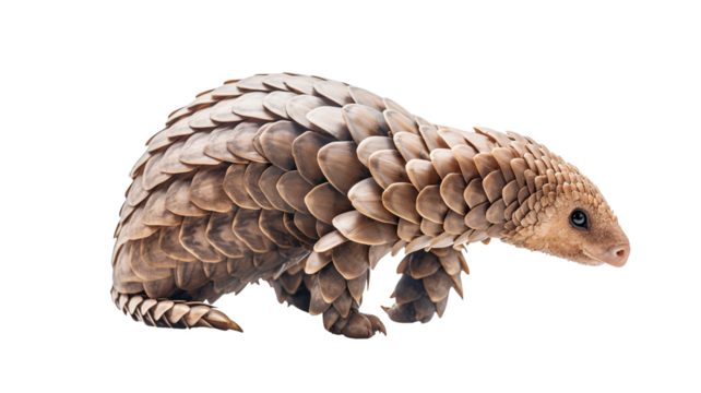 Pangolin with its head slightly turned, highlighting its armored body and intricate scale patterns, isolated on transparent background