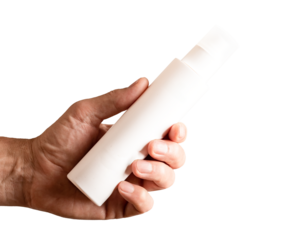 White aerosol spray and bottle Packing for cream, transparent background