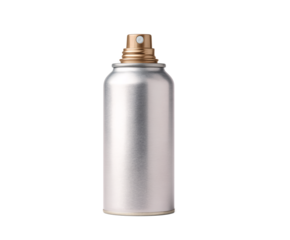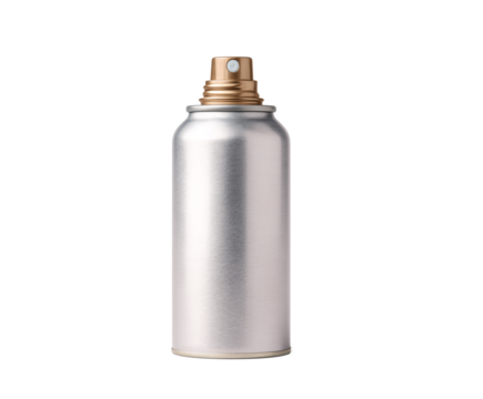 Modern sleek silver aerosol spray bottle with blue label displaying the word fresh
