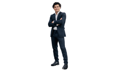 The entrepreneur is a young guy in a business suit, a successful man. Transparent background, png.
