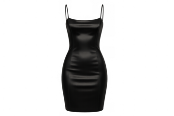 Black leather slip dress, bodycon silhouette, stylish women's apparel for evening wear and fashion concepts