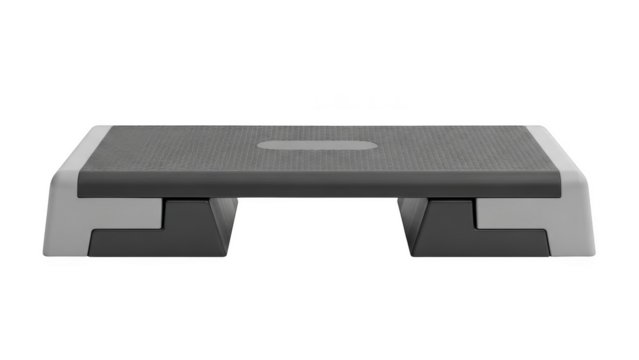 Gray and white aerobic step platform on black background