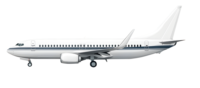 White airplane Boeing 737 Max 737-8 front view angle isolated on a transparent background. Modern passenger jet airplane.