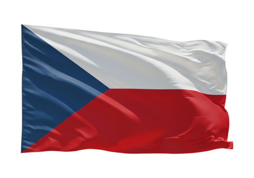 Czech national flag billowing, featuring white, red, and blue colors against transparent backdrop, symbolizing national pride