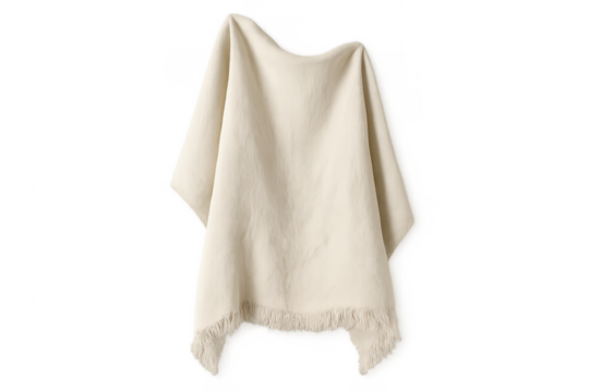 Fringed cream poncho garment apparel on transparent background