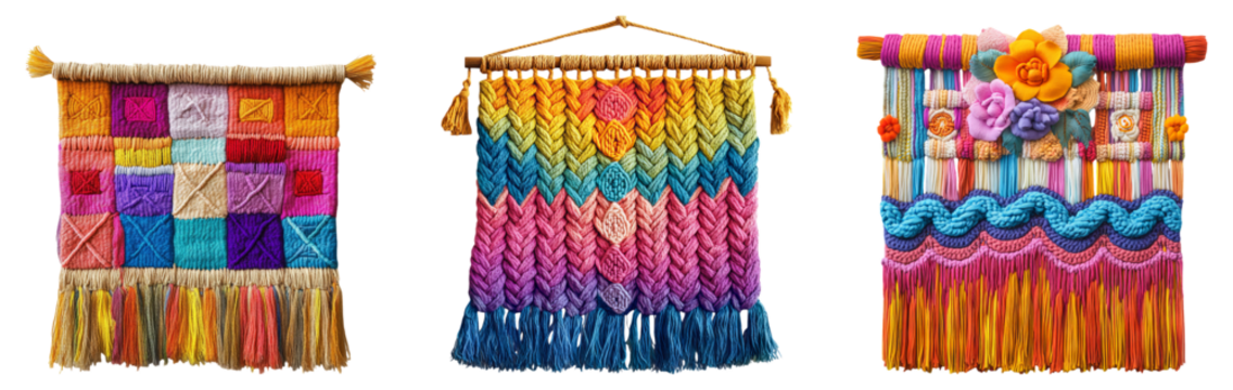 Colorful Textile Wall Hangings Isolated on Transparent Background
