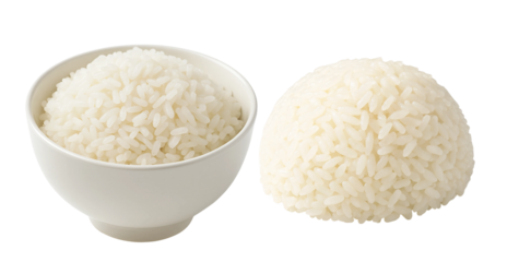 Cooked White Rice in Bowl and Portion Isolated on White Background