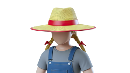 3D Render of a Cartoon Girl in Overalls and Straw Hat