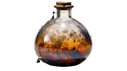 photograph of a tarnished alchemical flask