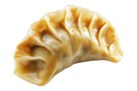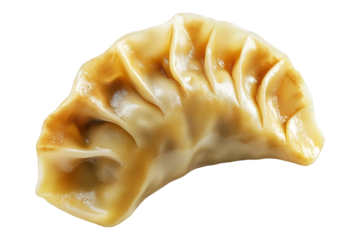 Steamed mandu dumplings placed in circular pattern on ceramic plate, isolated on white transparent background, concept of Asian cuisine