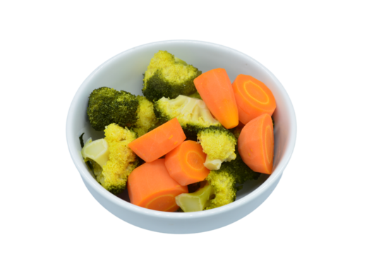 Set of two cooking pots one with lid and one boiling with contents on wooden trivet isolated on transparent background steam rising from food in blue pot