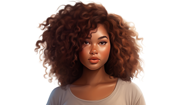 Beautiful plus size afro american woman isolated on transparent and white background.PNG image.