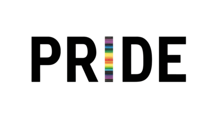 Modern PRIDE text with rainbow “I” on white background