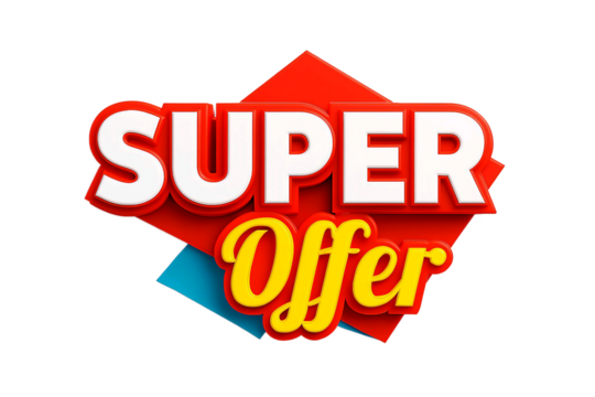 Bright red and yellow super offer sign with white lettering isolated on transparent background