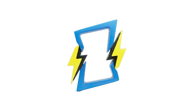 3d lightning bolt with bold outline on transparent background