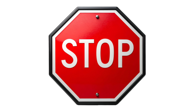 A red octagonal road sign with the word "STOP" in white text against a black backdrop