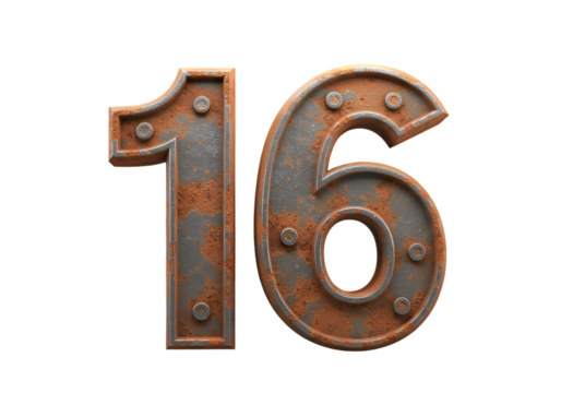 Isolated Rusty Sixteen Numeral on Transparent Background Photo