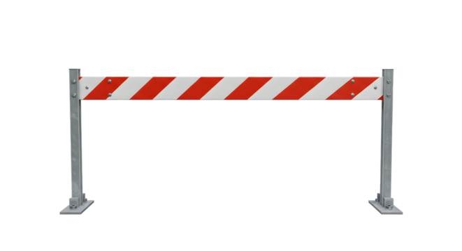 Durable metal construction barrier with bold red and white warning stripes for effective crowd control and safety applications