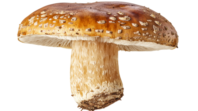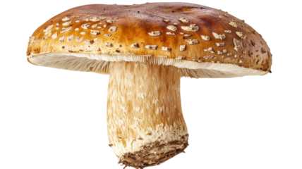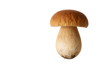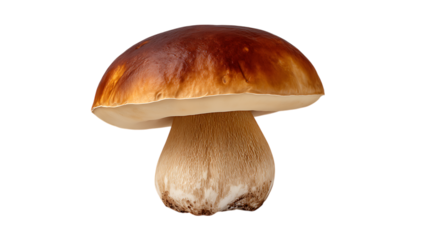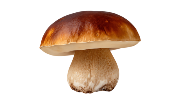 Porcini mushroom PNG isolated on transparent background, edible boletus mushroom with brown cap and thick stem for culinary use