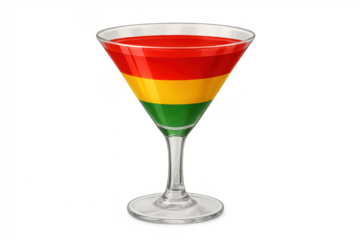 Martini glass with bolivian flag colored layers drink