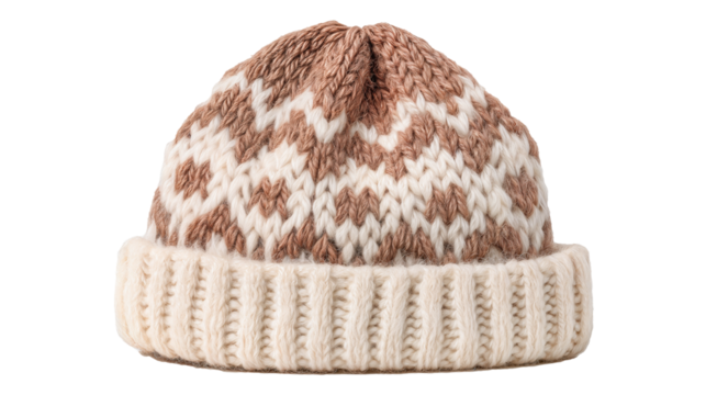 Handmade wool chullo hat on white background with clipping path
